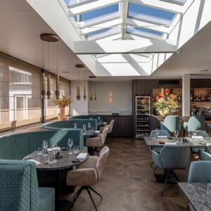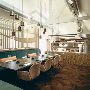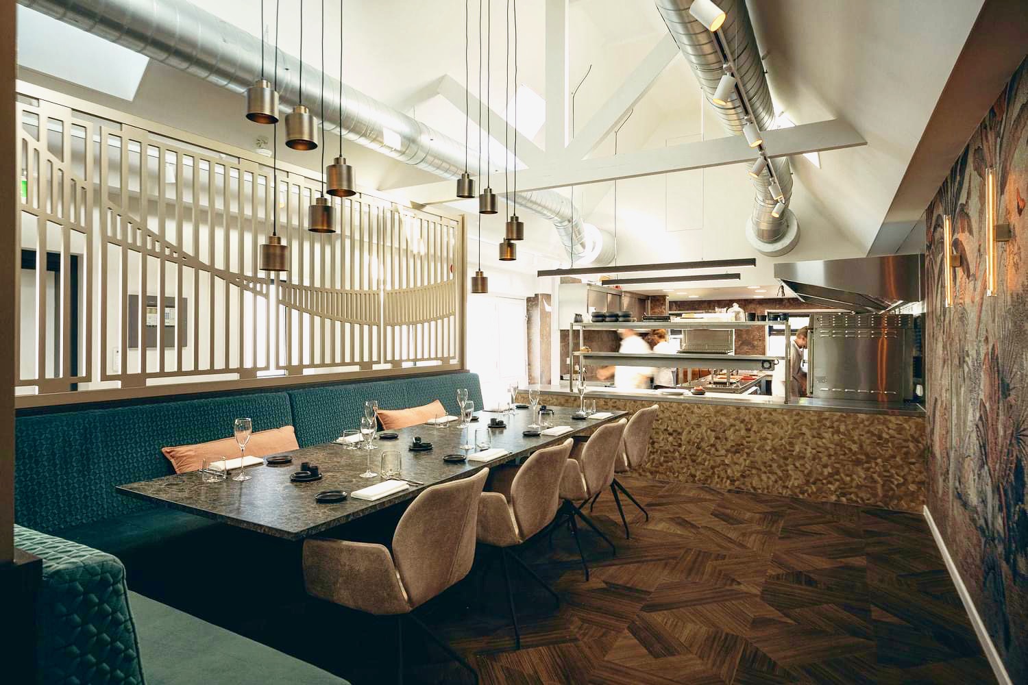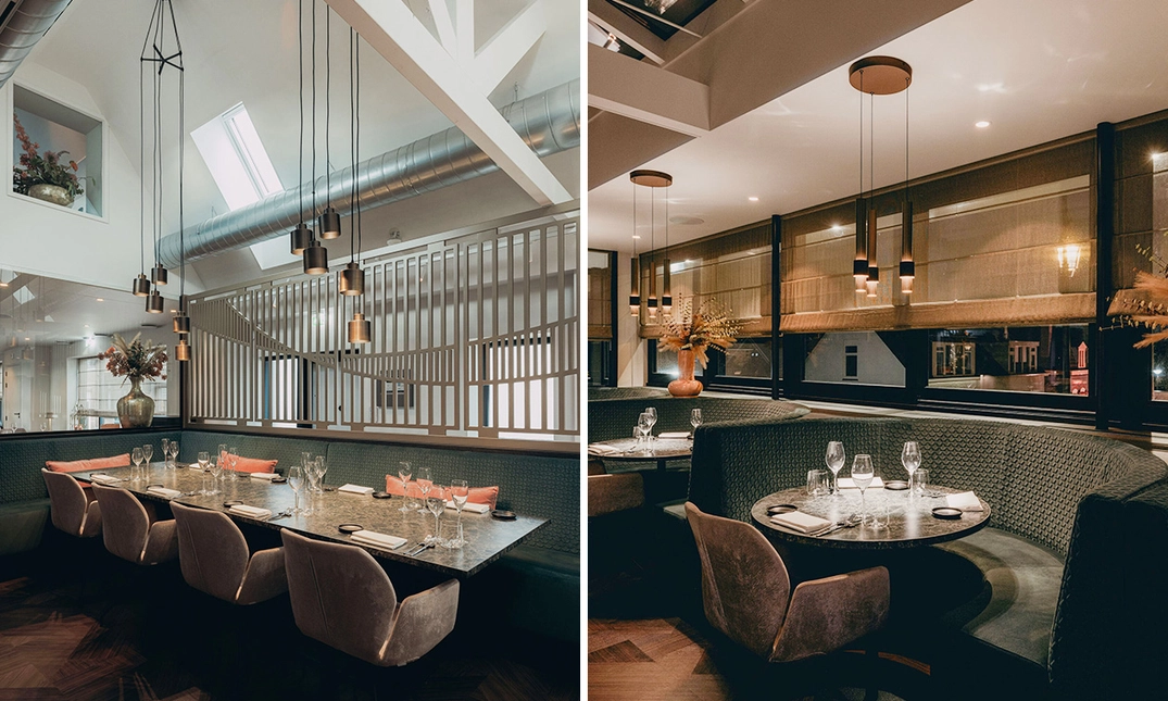 Ook de Chef's Table met maatwerk bank, tafels en room divider mocht niet ontbreken.